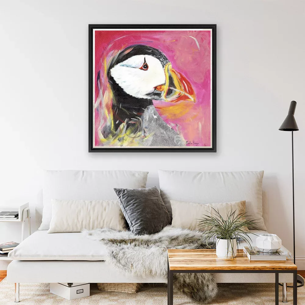 Precious the Puffin is ideal for bright interiors, beach-inspired décor, or anywhere you want to add a spark of happiness. Its pink backdrop adds warmth to neutral walls, while the puffin’s lively gaze draws instant attention.